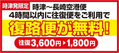 ※往復4時間割(送迎割引) 時津港から長崎空港へ往復で乗船されるお客様のみご利用いただけます。