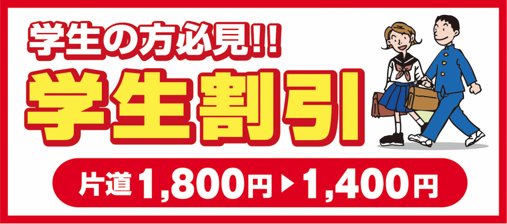 身体障害者割引 一種:ご本人様及び介護者一名片道運賃の5割引